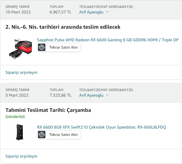 Kaçırır mıyım? 6600xt 8250₺ olunca aradaki fark 1500₺ oldu o fark a değmez dedim Pulse 6600 i şipariş ettim. Cumaya kadar ödemesini yapmam. (İncecuma ya bakarjm=Siz aldınızmı hocam