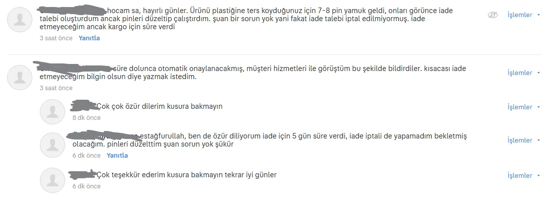 İyi günler ben bir işlemcimi sattım ryzen 5 5500 adamın eline ulaşmış adamın dediğnie göre yamuk pinler gitmiş ters koymuşum denildi iade oluşturmuş sonradan yamuk pinleri düzlettim iadeye gerek yok diye iade talebini iptal etmek istemiş ama iade talebi iptal olmuyormuş bu durumda dolandırılmam mümkün mü belki son gün ürünü başka bir işlemci ile kargoya verse ben ne yapıcağım bilgisi olan var mı