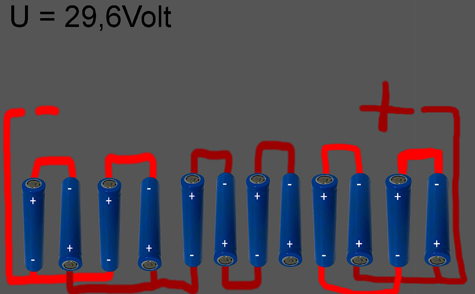Pilleri resimlerdeki gibi bağlayacağım toplamda 29,6Volt gerilim elde edeceğim.