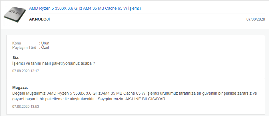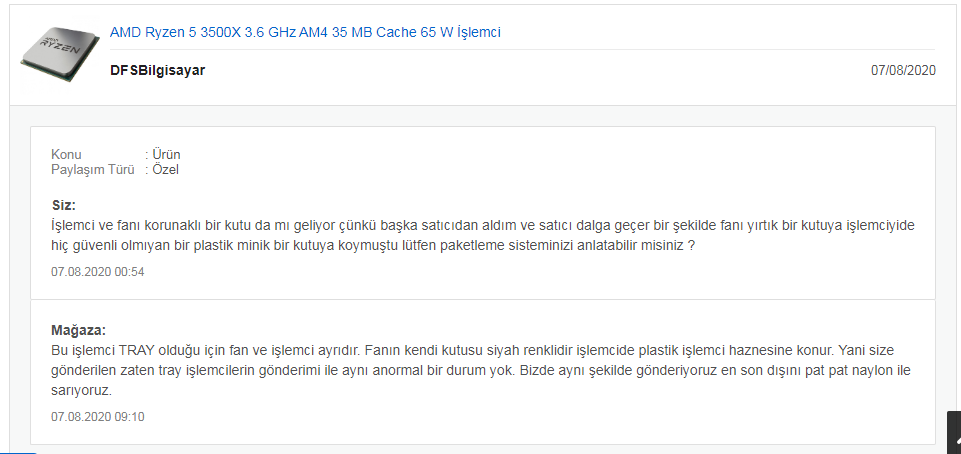 Yok kazık değilde yani böyle hangisinin paketlemesi güvenli diye karar veremedim yoksa iki satıcının yorumlarını mağzasını inceledimdostum burdan al bu kazık yerlere girme ; https://www.itopya.com/amd-ryzen-5-3500x-36ghz-35mb-onbellek-6-cekirdek-am4-7nm-islemci-mpk/