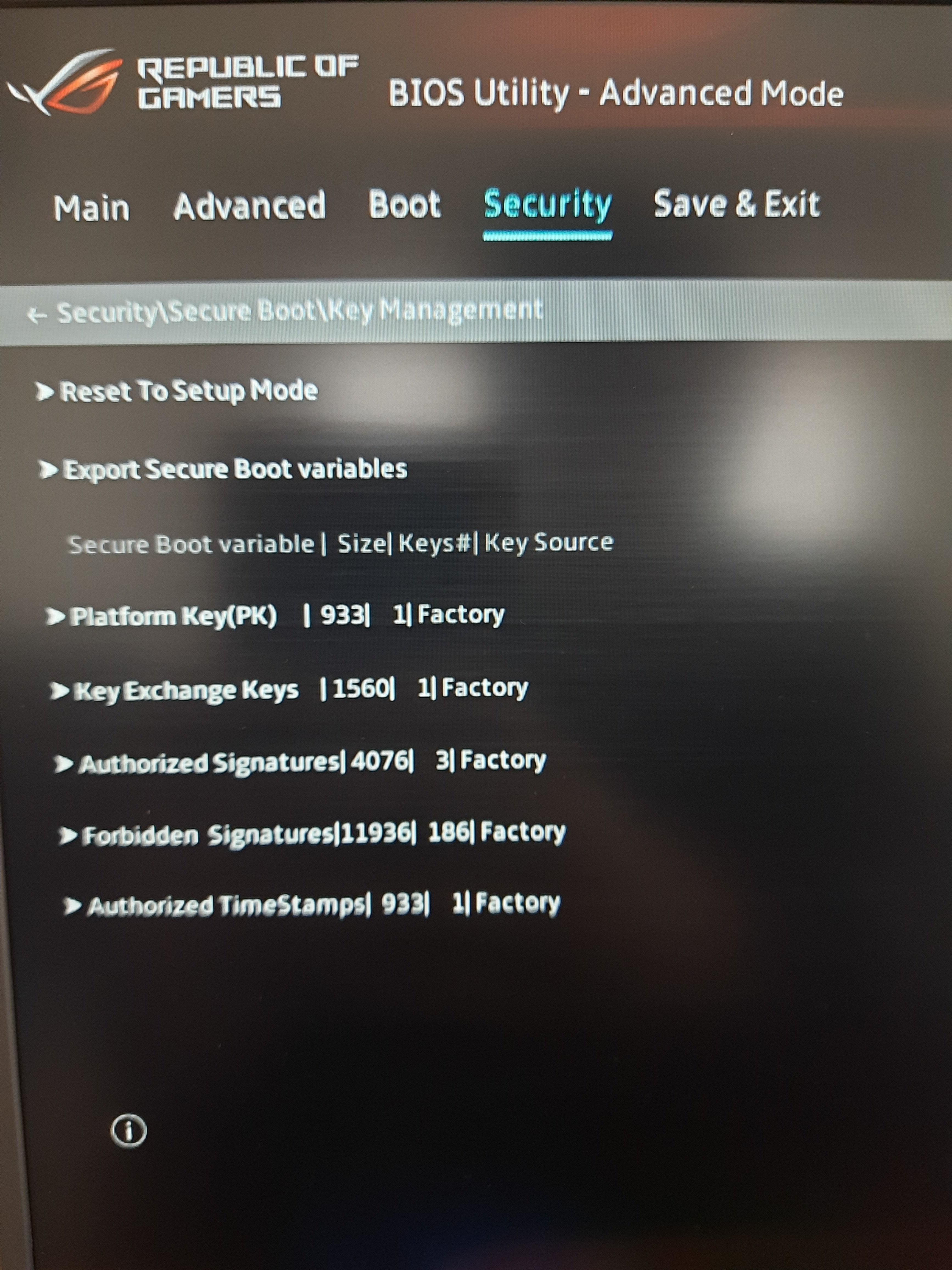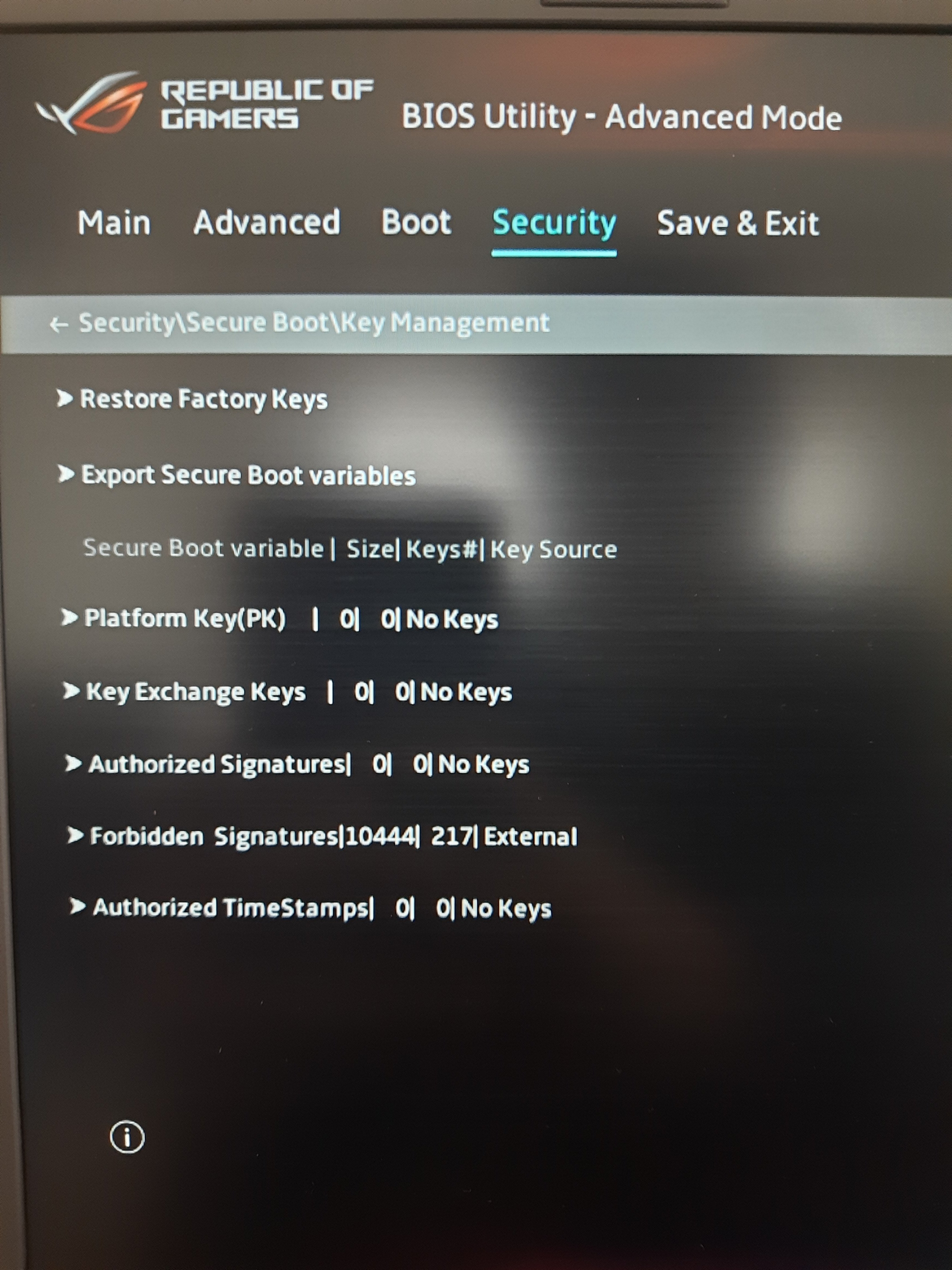 Key Management kısmına girip fotoğraf atar mısın?Alıntıyı görüntüleAsus bilgisayarda secure bootu aktiflestiremiyorumbu yüzden valoranta girmiyor bölen varsa yazabilir mi acill