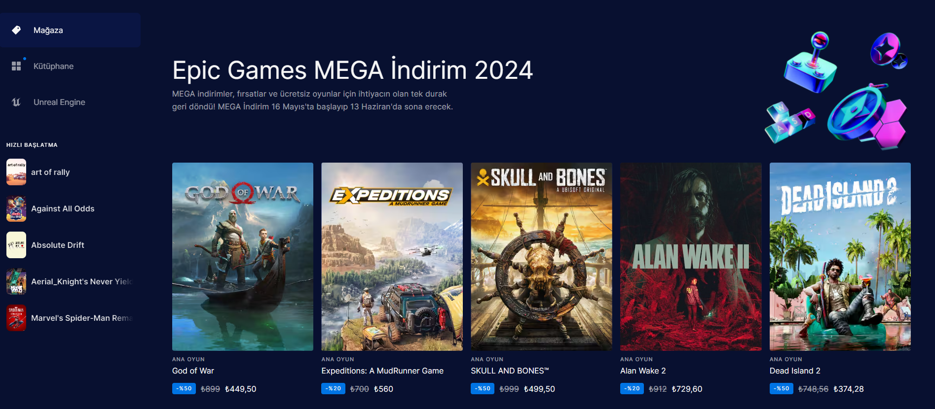 Epicten Spider-Man steamede yaz indirimi gelince forza 5 mi alsam acabaEpic Games MEGA İndirim 2024 BAŞLADI! (16 Mayıs - 13 Haziran)