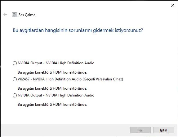Ses kartının sürücüsü yüklü değil galiba.Bilgisayara kulaklık taktığım da ses gelmiyordu sorun gider kısmına girdim orada hdmı konektörü yazıyor normal de kulaklık girişinin yazması gerekmiyor mu?