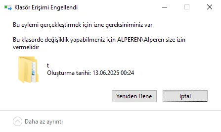 MSMG Toolkit yükledim ve c diskine attım atmaz olaydım şimdi silinmiyor windows sanırsam sistem dosyası zannediyor 3 tane klasör var onları silemiyorum silmeye çalıştığımda ise bu oluyor (klasör 12gb yoksa uğraşmazdım)