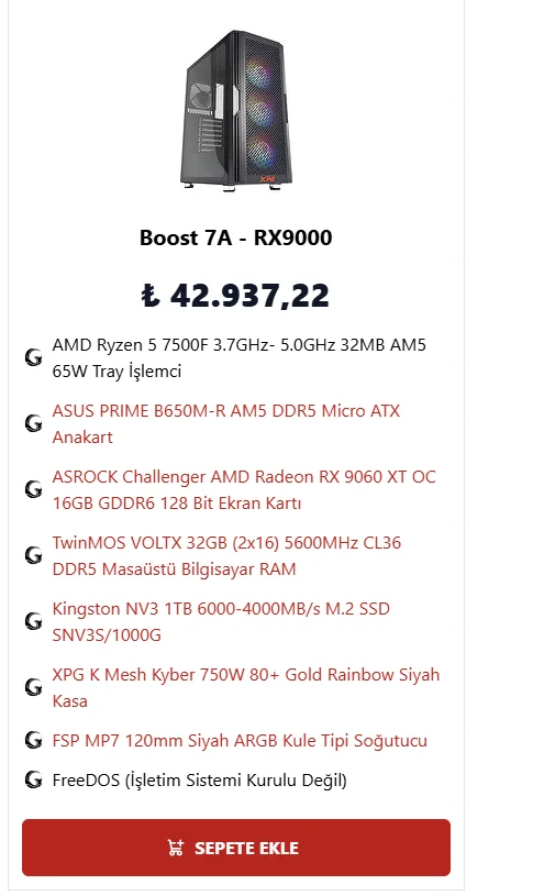 Sinerji Crucio Sapphire Radeon RX9060XT Pulse 16GB Intel Core i5 12400F 16GB DDR5 512GB NVMe M.2 SSD OEM PAKET fiyatı ve teknik özellikleri için hemen Sinerji Bilgisayar'a gelin ve en iyi fiyatlar ile sahip olun