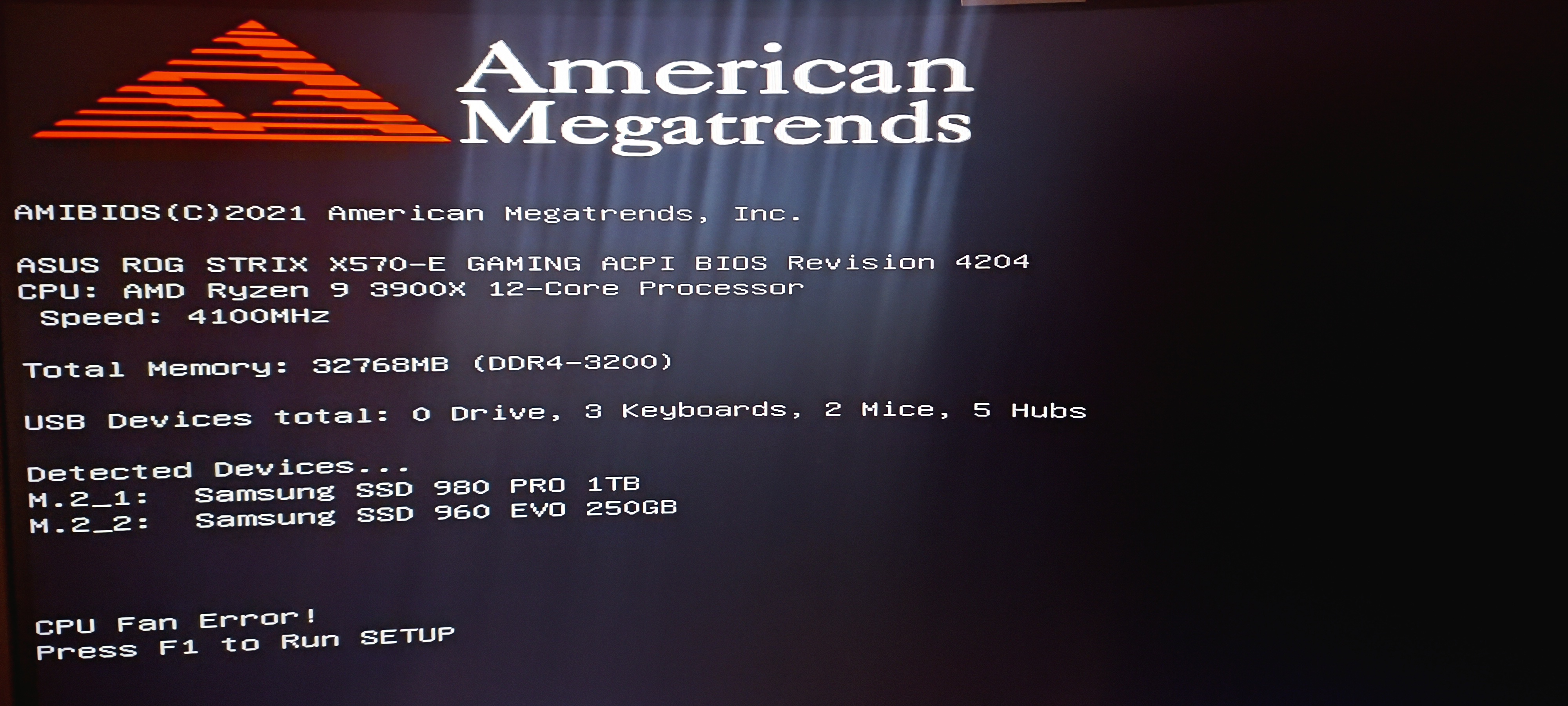 Aşağıdaki görseldeki gibi sistem açılışında(her defasında) CPU Fan Error! hatası alıyorum ancak BIOS'a F1'e basıp girdikten sonra ESC kaydet yaptığımda sistem açılıyor. 2-3 aydır böyle yapıyorum ama artık çözeme zamanı. Sıvı soğutma var, fanlarda sorun yok, ısıda sorun yok her şey olması gerektiği gibi çalışıyor. Kabloları kontrol ettim takılı bir bağlantı sorunu görünmüyor. Başka ne olabilir?