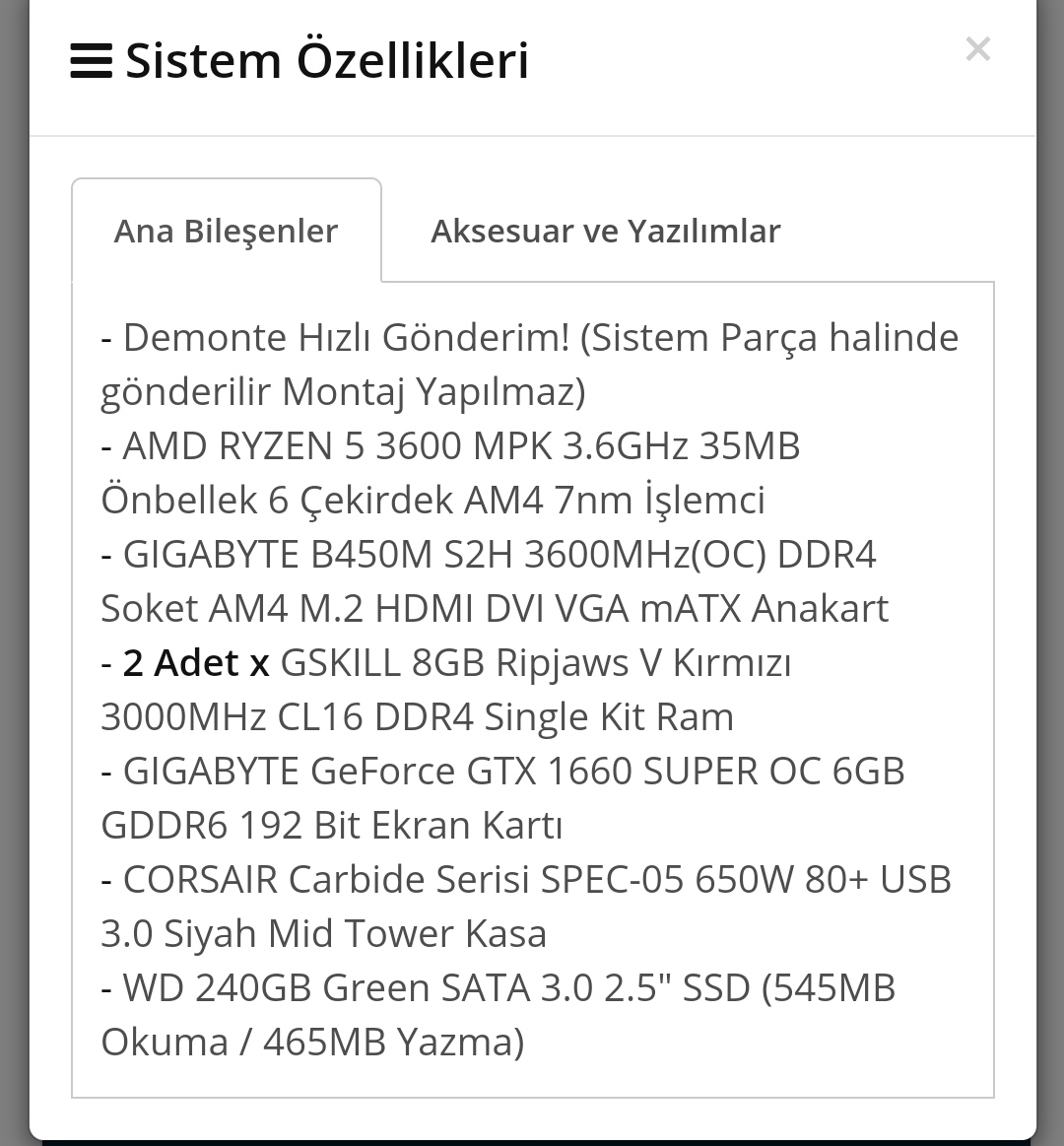 Uu, güzel sistem WD Green yerine başka bir 240'lık SSD varsa al.Buna ne dersin peki son ihtimal![]()
