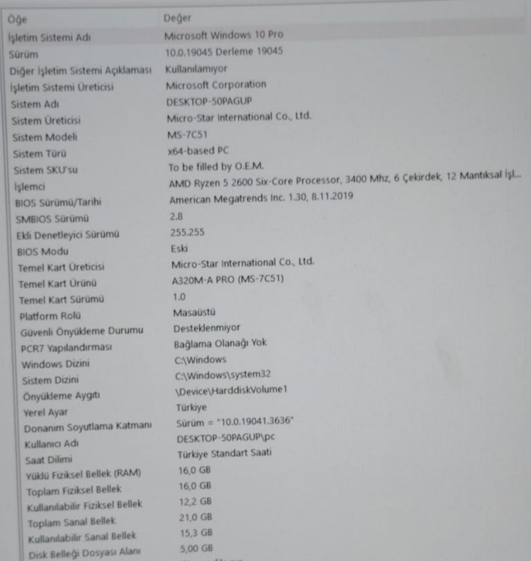 sanırsam kfg durumları pek yok depolamayı kasayı psuyuda yazmamışsın ama kafamda kuruyorum 6-7 civarı gider gibiRyzen 5 2600x 3400 Mhz İşlemci