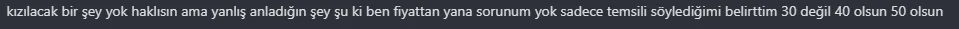 ustam yanlış anladın ben hadsizlik falan yapmadım 15ten 40a falan da atlamadım sen satınca 30 oluyor dedin ben de 10 daha koyarım 40 olur dedim?