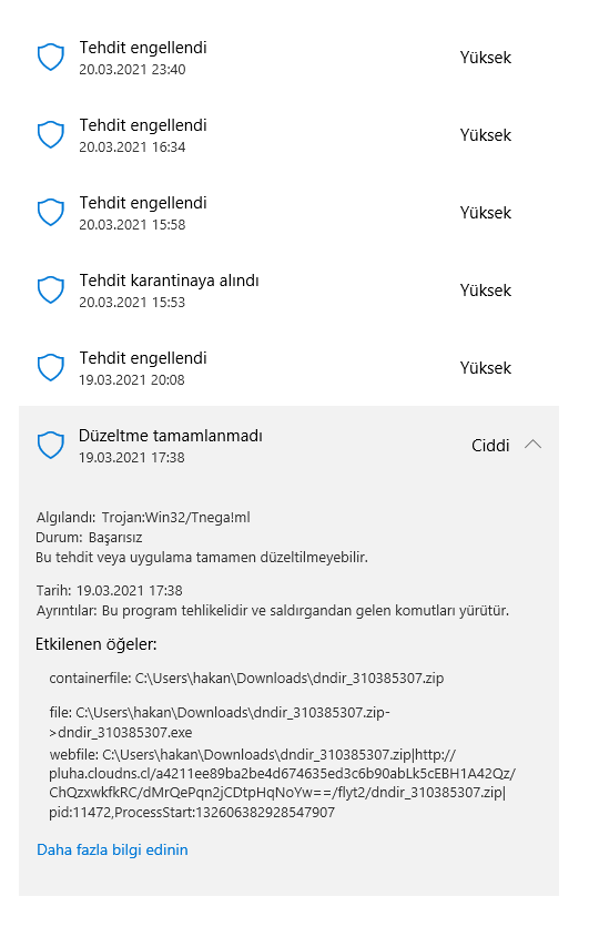 Herkese merhaba. Sistemimde ayın 19' da Windows Defender ile yaptığım tam taramada fotoğraftaki trojan:Win32 isimli virüs bulundu. Fotoğrafta göründüğü gibi defender ondan önce bulduğu doysaları sildi fakat ona herhangi bir şey yapamadı. Ben de ardından Kaspersky indirdim. Kaspersky yaptığı ilk taramada bir şeyler buldu sanırım sildi tam hatırlayamıyorum 2. yaptığım taramada pc nin temiz olduğunu söyledi. Benim içim rahat olmadığı için farklı virüs programlarıyla ayın 19' dan beri virüs taramalaı yapıyorum. Kullandığım virüs programları Kapersky Cloud Free, Malwarebyte, HitmanPro ve Windows Defender. Bu 4 programla pc de internet varken ve yokken taramalar yaptım hiçbiri bir şey bulamadı sizce sistemim temiz mi. Pc de herhangi bir yavaşlama ya da kaynakları (RAM, depolama, işlemci kullanımı vb.) fazla kullanma gibi bir durum da yok. Belli aralıklarla da görev yöneticisinden arka planda çalışan uygulamalara ve işlemlere baktığımca ters bir durum yok. Sizce pc temiz mi?