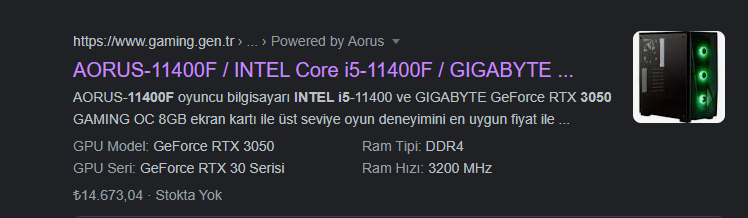 16.5a önerdğim sistem linkini atar msn?kardeşim sen 10kya ilanı koy istiyosan 11e zaten teklif gelmeyecektir ona göre fiyat düşürürsün bu arkadaş dediğini çok bilmiyor ciddiye almamanı öneririm internete 3050 yazıp onun fiyatını atıyo attığım linkte 13.5a 3060 var başka konularda da 16.5a 3060sistem önermiş sistem fiyatlarından bihaber olduğu ortada