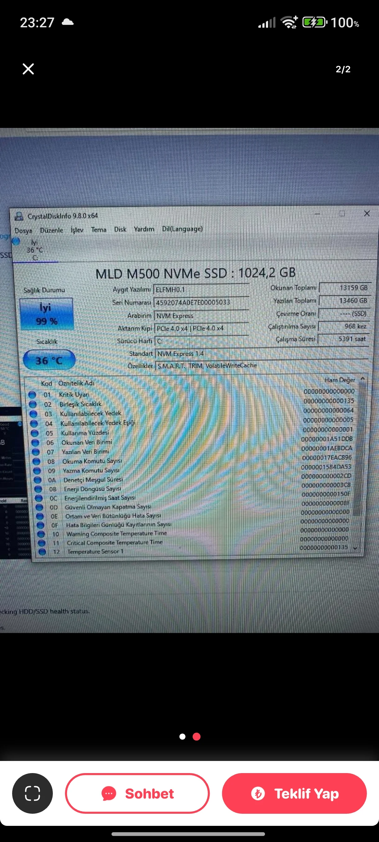 Sata SSD değil ki buSsd sağlık durumuna güvenim 0 %99 sata ssd cok gördüm bozulan