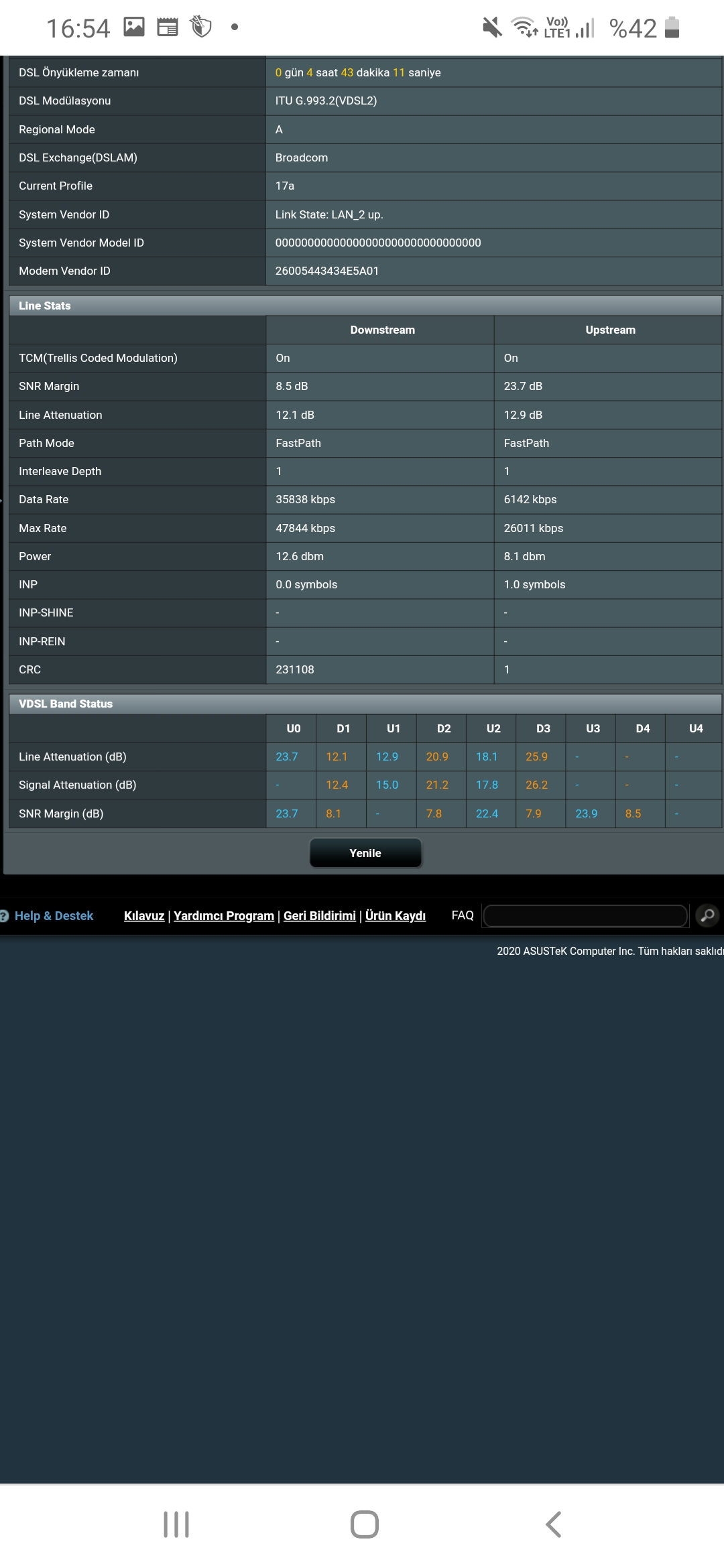 RevDeisDou yazmış: Kopma yaşıyor musun? Bende 4 SNR Margin ama kopmuyor. Devamı için tıklayın... hayir ama crc yükselince hic bir yere giremiyorum