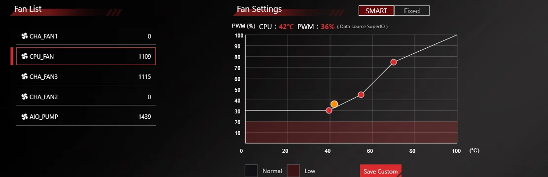 Radyatör fanları ise: 40 derecede %30 PWM - 55 derecede %45 PWM - 70 dereceye ulaşırsa %75 PWM ye aldım.