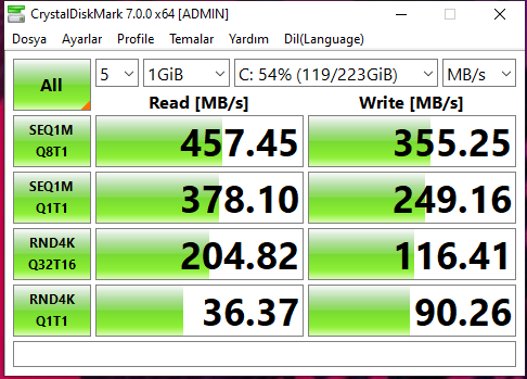 Sorunlu bir ssd zaten sağlığıda hızlı düşmüş Söylediği hızın altında hız vermiş