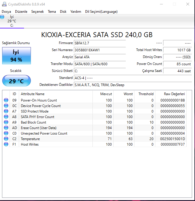 Ya Keşke 100 Lira Daha Verip Almayaydım Bu Lanet SSD'yi.Aldım senin konunu da listeye, sağlık değerin cidden hızlı düşmüş.