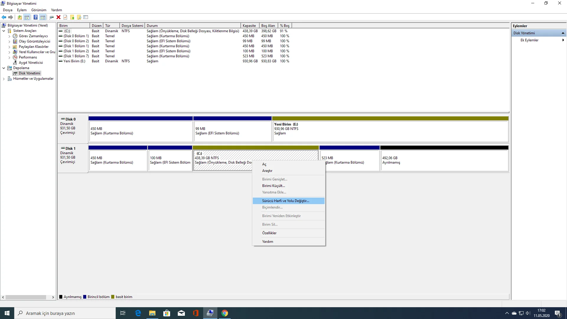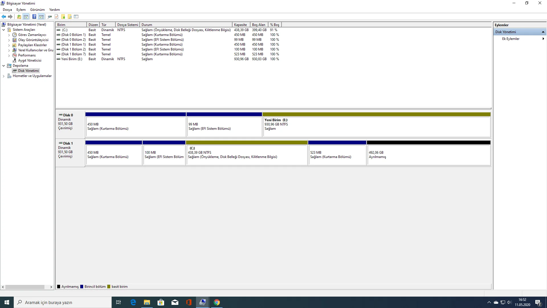 Merhabalar öncelikle bende 970 evo plus ssd var.Bunu mağazada toplarken 2 ye bölmüşlerdi yarı yarıya çok alan dolduğundan ben bunu tek birim yapmak istedim yaparken bunları harddiskde dahil basit birim yapmışım.SSD'yide birleştiremedim.Format atıp orda siler yeni sürücü kurarım dedim.Fakat formatdada orayla oynuyamadım ss de görülen 438 GB'lik kısma yükleme yapabiliyorum windowsu.hiç bir şekilde oynama yapamıyorum.Bu konuda bilgisi olan yardım edebilir mi ?