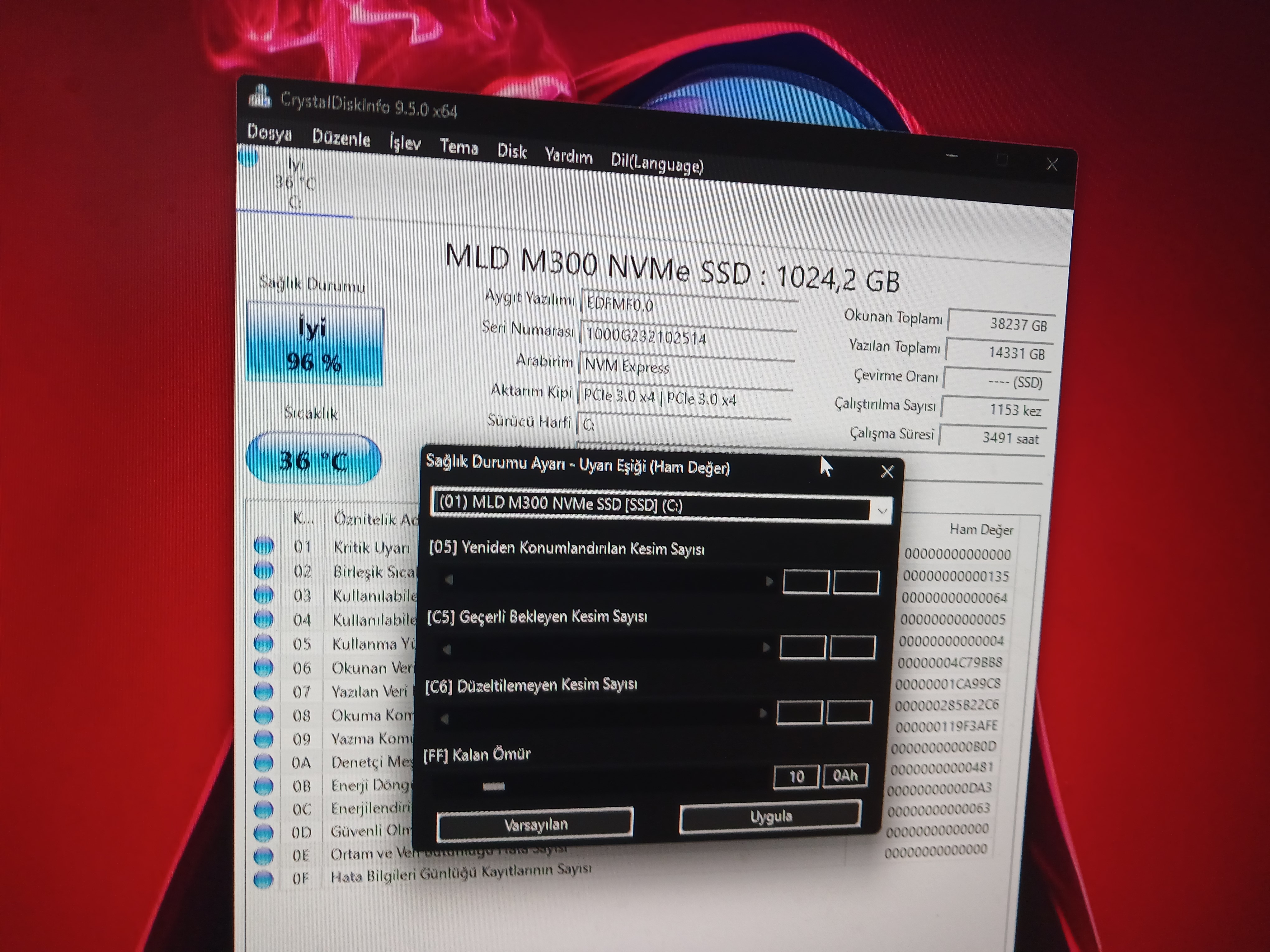 Eyw reis normalse iyi aman içim rahatladı ana kartta soğutucu yok ssd çıplak ana kart giriş orta seviye olduğu için normalse sıkıntı yok ozm eywAnormal bir durum yok. Tüm bellek ürünlerinde parçanın çalışması için kendine ayırdığı bir kapasite oluyor. 953 gözükmesi normal yani. 14gb veri yazmışsınız ssd modelinizin yazma ömrü düşük olduğu için %4 sağlık gitmiş. Endişelenmeye gerek yok her şey normal görünüyor. Isı değeriniz de normal. Eğer anakartınızda soğutucu yoksa m2 soğutucusu sipariş verip daha