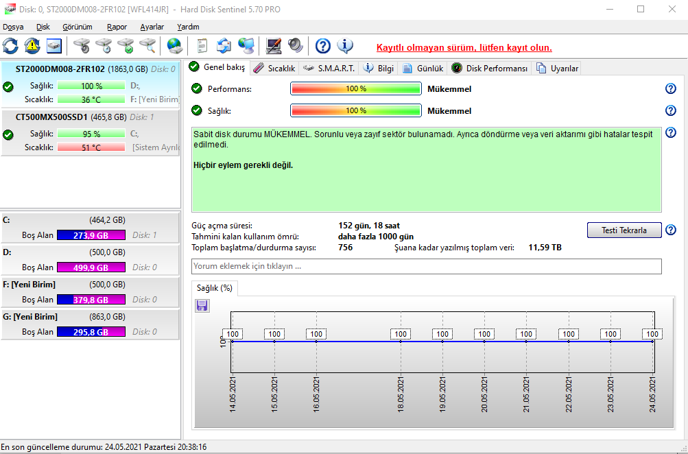Selamlar, 6 ay önce Crucial MX500 500 GB SSD aldım ancak bugün hard disk sentinel'den hard disk sağlığına baktığımda %95 gözüküyor ama, 6 ay kullanıma göre bu iyi mi? Eğer kötü ise ne yapabilirim acaba? Ve kötü ise neden bu kadar hızlı düşmüş olabilir?