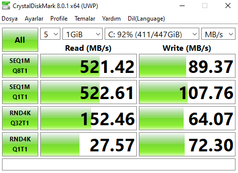 Büyük ihtimalle evet. Testi ATTO ile tekrarlayın isterseniz, değerler artar belki.Yani yazma hızı yer az olduğundan kaynaklı değil mi?