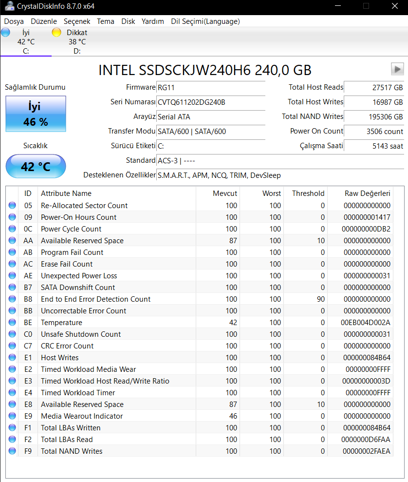 Ekran görüntülerini aldığım laptobumda bulunan ssd ve hdd ye ait. Testler turbo fan modundayken yapıldı. Windows ssd de kurulu olmasına rağmen tepkiselliğinde bir azalma var nedeni ne olabilir ? Yapılabilecek bir şey var mıdır ? Teşekkürler...
