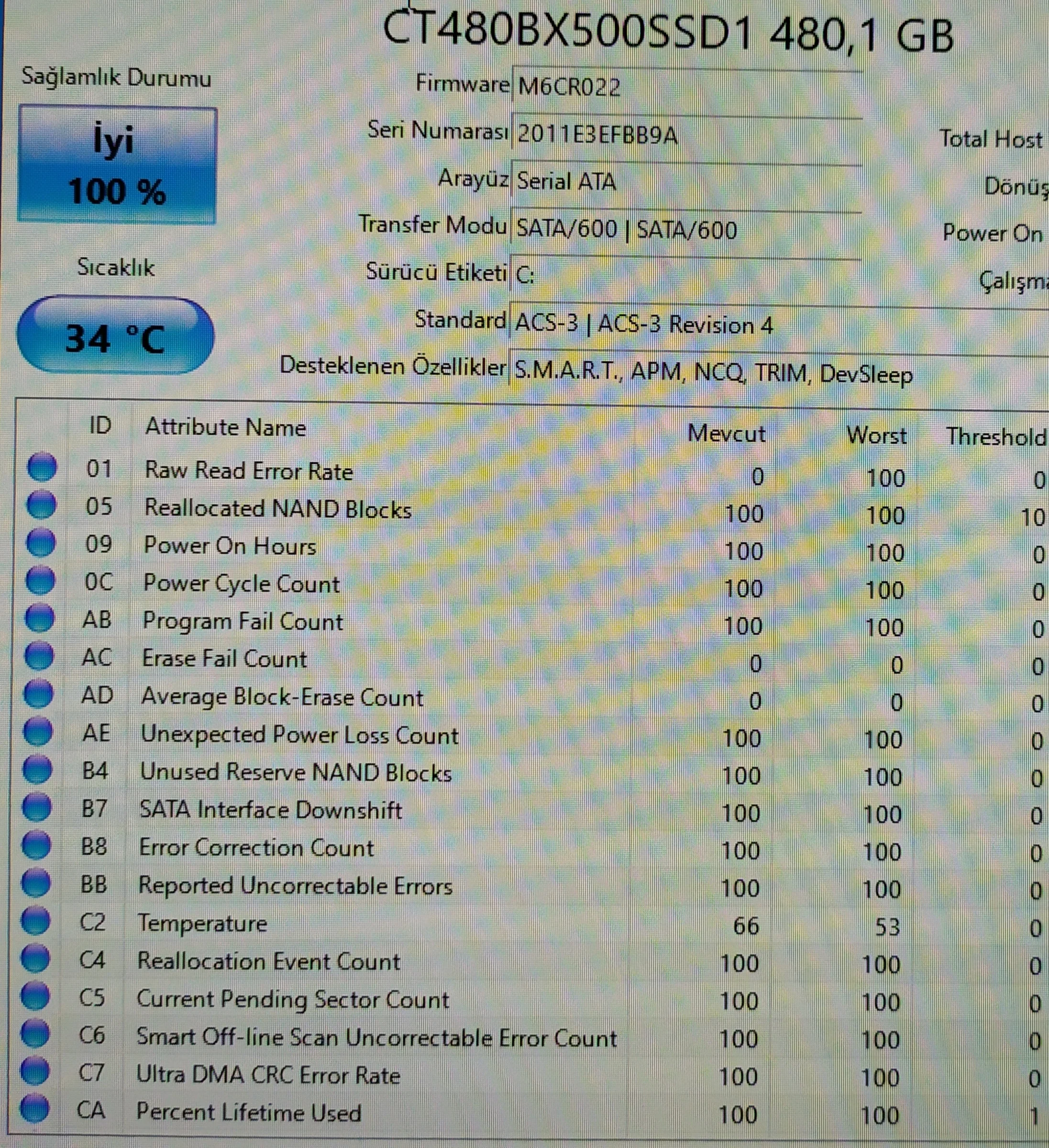 Normal sayılabilir ama biraz şüpheli geldi.Crucial bx500 480 GB SSD ve bunlarda sonuçlar.
