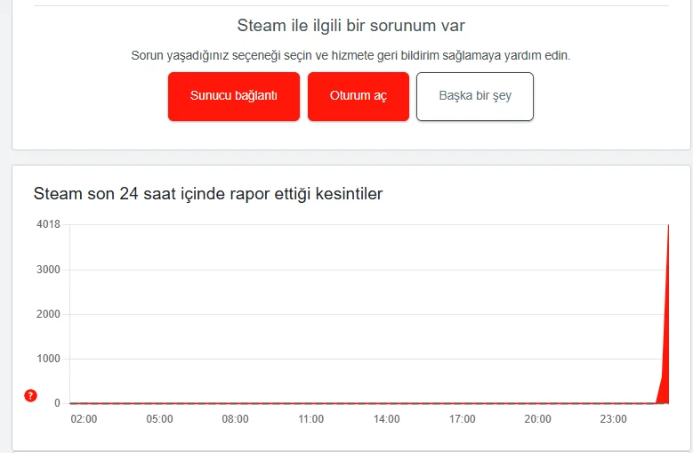 KANKA STEAM SUNUCULARI ÇÖKTÜ. SENLİK BİR SORUN YOK "https://downdetector.tr/durum/steam/" ADRESİNDEN KONTOL EDİP SUNUCU BAĞLANTI HATASINI İŞARETLEYEBİLİRSİN ANLIK OLARAK STEAM ÇÖKTÜ.
