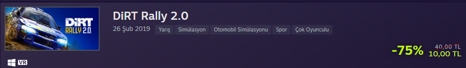 Dirt Rally 2.0: Yarış oyunlarının büyük bir fanı değilim, yarış oyunlarının profesyoneli de değilim fakat oynadığımda bana bile zevk veren bir oyun. Yarış veya araba oyunu isteyen varsa kaçırmasın.