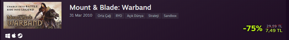 Mount & Blade: Warband: TaleWorlds'ün elinden çıkmış olan ve üzerinden 11 yıl geçse bile hala oynarken bana Bannerlord'dan daha çok zevk veriyor. Çoğunuz zaten hayatınızda 1 kere de olsa oynamışsınızdır.