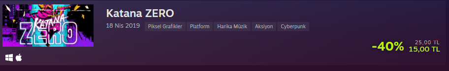 Katana Zero: Yine şiddetle önerdiğim bir oyun, hikayesi tamamen bizim seçimlerimize göre ilerliyor. Müzikleri ve oynanışı da çok güzel.
