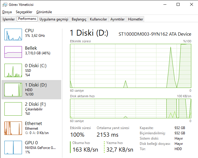 Steam açılırken ve çalışırken hdd'yi %100 kullanılıyor bundan dolayı bilgisayar kullanılmaz hale geliyor steam'ı kapattık dan sonra hiçbir sıkıntı kalmıyor