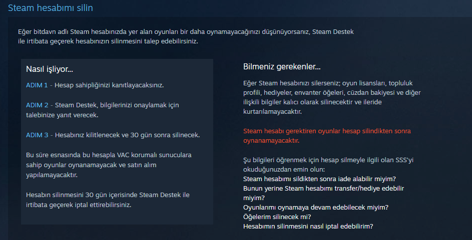 Steam hesabını silmek