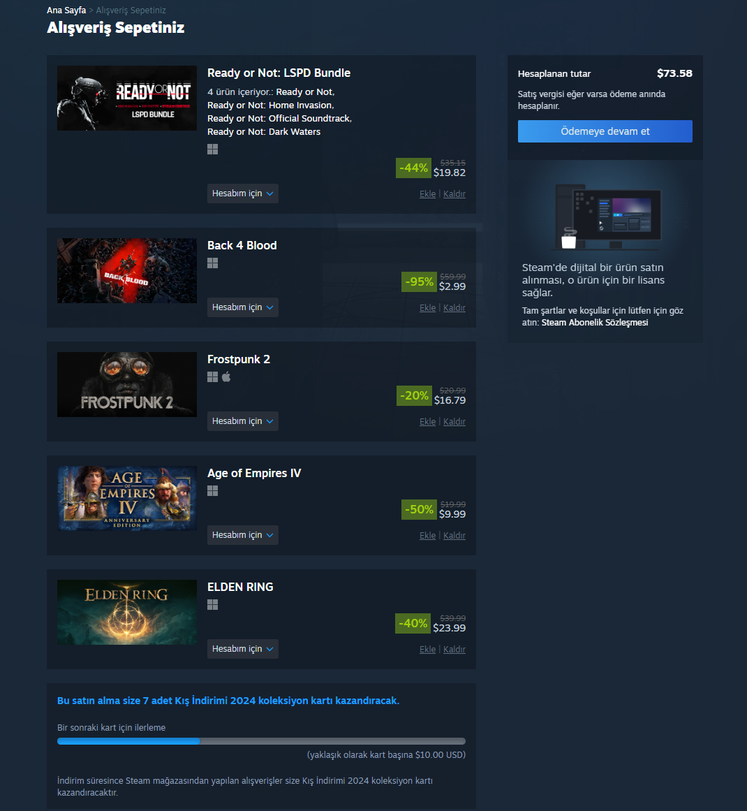 150 tl eksiğimiz var bu senede oyun alamıyozBüyük yapımlarda indirimler var fena değil tabikide epicte fiyatlar daha ucuz ama steamden almak isteyenler için güzel fiyatlar var.