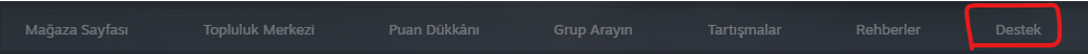 Açılan sayfada "Destek"e bas.
