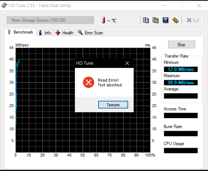 HD Tune ve Crystal Disk Mark ile yazma okuma ve bad sector testi yapın ve sonuçları paylaşın.