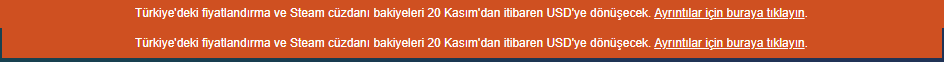 zaten alamıyorduk şimdi hiç alamicaz ben torrente geçiyom yeter"Türkiye'deki fiyatlandırma ve Steam cüzdanı bakiyeleri 20 Kasım'dan itibaren USD'ye dönüşecek."