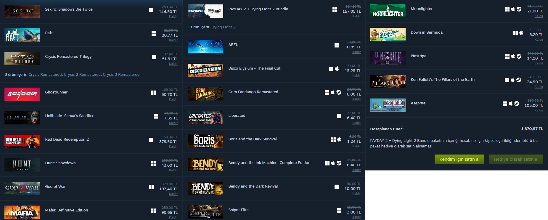 Mafia'yı trigoly yaparak alabilirsin 150tl ye 2 ve 3 te geliyor birlikte. Ve kesinlikle resident evil 2 & 3 bundle almanızı öneririm oda 150TL