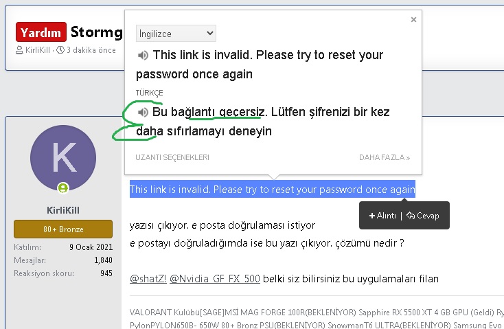 This link is invalid. Please try to reset your password once againyazısı çıkıyor. e posta doğrulaması istiyor