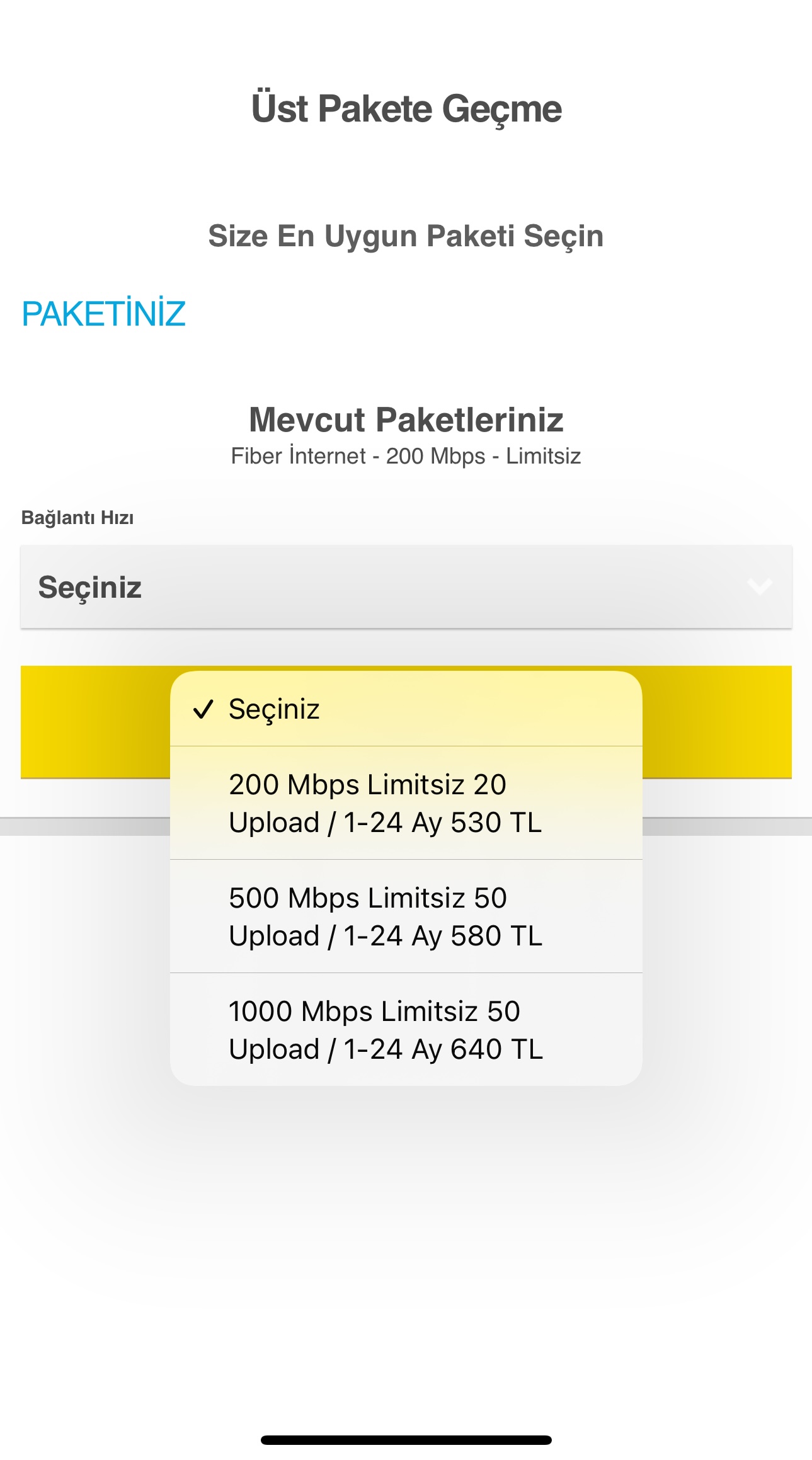 İnterneti yükseltmeyi düşünüyordum da uygulama üzerinden eski sözleşme fiyatlarına rastladım.