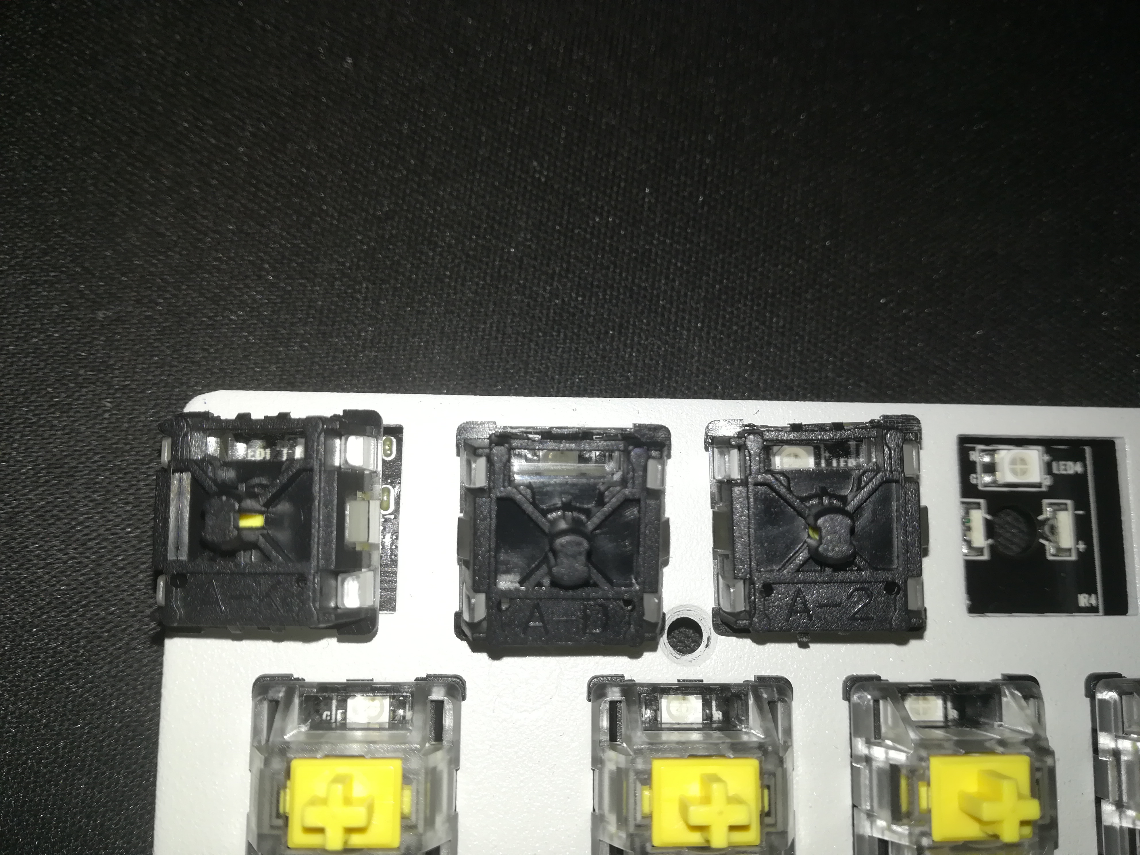 Mizar mz60 yellow sw klavye var hem temizlik hem de tape mod uygulamak için swleri sökerken altında yazılar gördüm a-2 a-d a-k f-b gibi farklı farklı bunların bi anlamı var mı ?