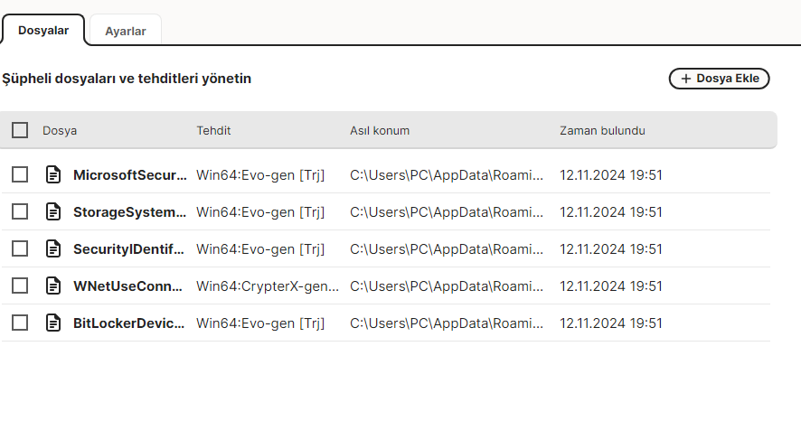 çok garip taramada çıkmadı bir şey karantinaya girdim bunlar çıktı sildim sonra bir dosyayı karantinaya almak için pcyi yeniden başlat dedi başlattım karantina yine dolmuş algılayamıyorum @Emre Zengin