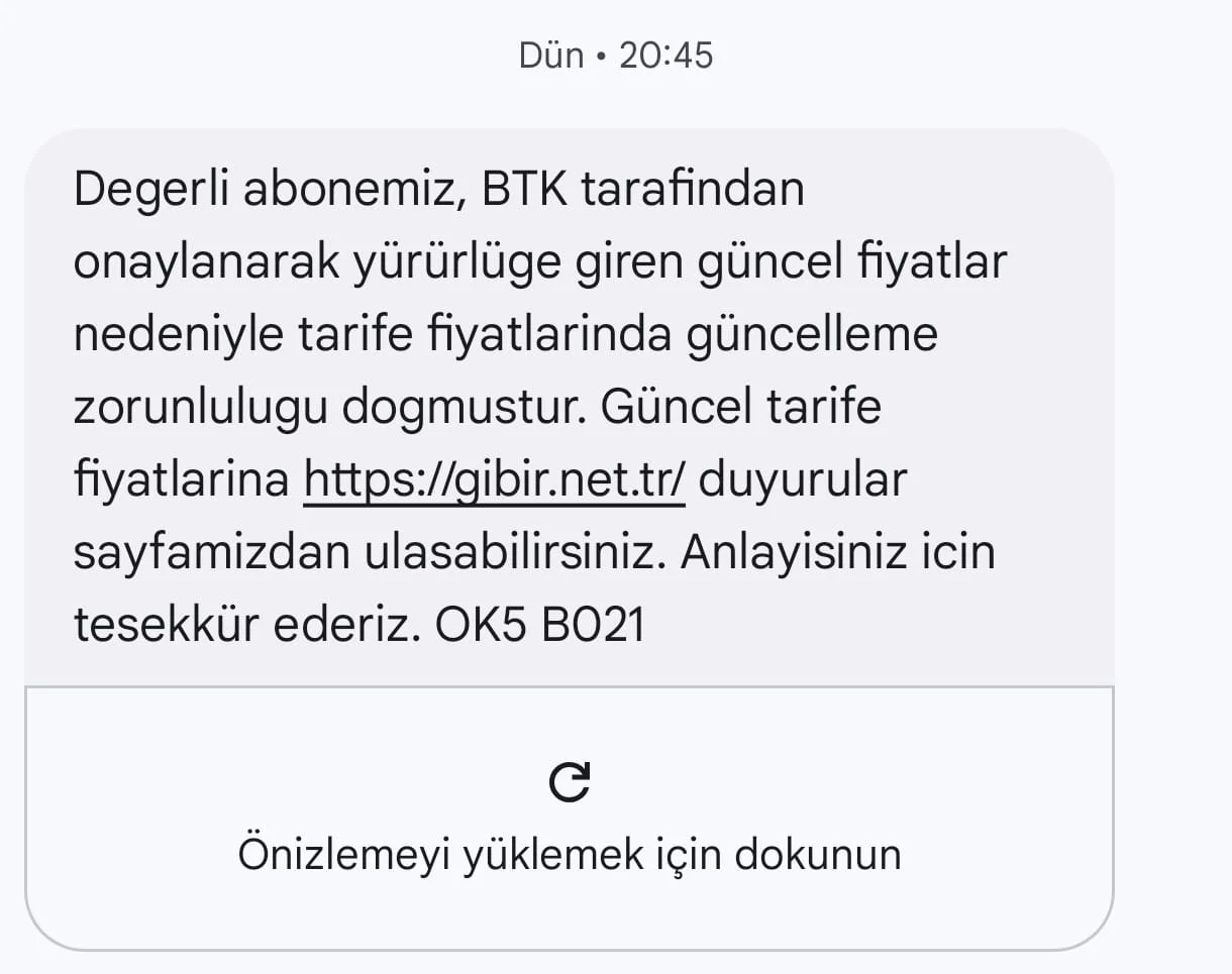 Türk Telekom ile aynı paketi verip üstüne tahattütsüz olup zam yapıyorlar bu kadar veriyorsanız Türk Telekomdan alın zam yemeyinDün şöyle bir sms aldım.