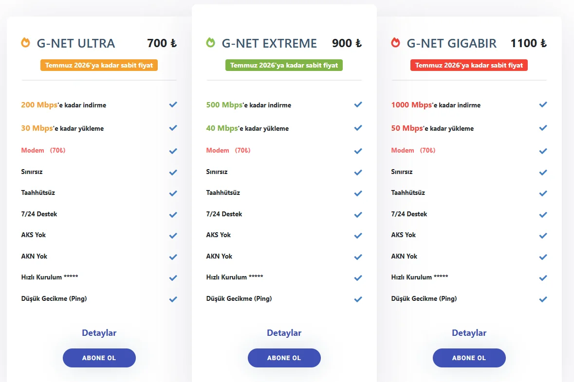 5 yıldır kullanıyorum memnundum gıbır dan ama bana 110 TL zam yaptılar bugün netspeede başvuru yaptım.Ben gıbır net kullanıyorum 310 tl ödüyorum yıl sonuna kadar türknet de zam yapacak tır illaki hızlı olun gıbır net tavsiye ederim