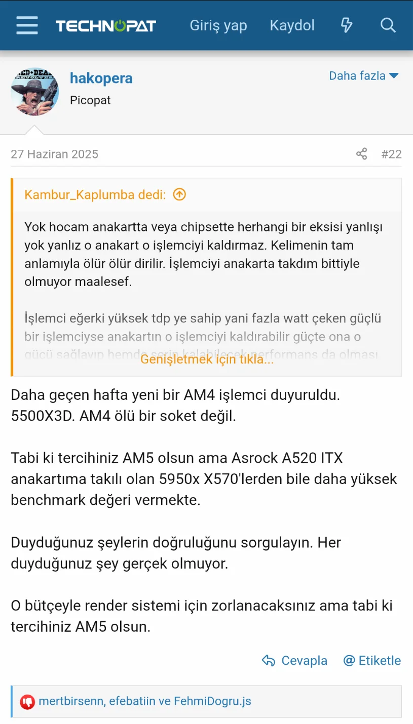 Ulan sen en başta 7900X yerine 5950X önermeseydin biz seninle uğraşmak zorunda kalmazdık sen de binlerce yalan söylemek ve dansöz gibi kıvırmak zorunda kalmazdın, ne demek herkese AM5 önermişimdir lan?