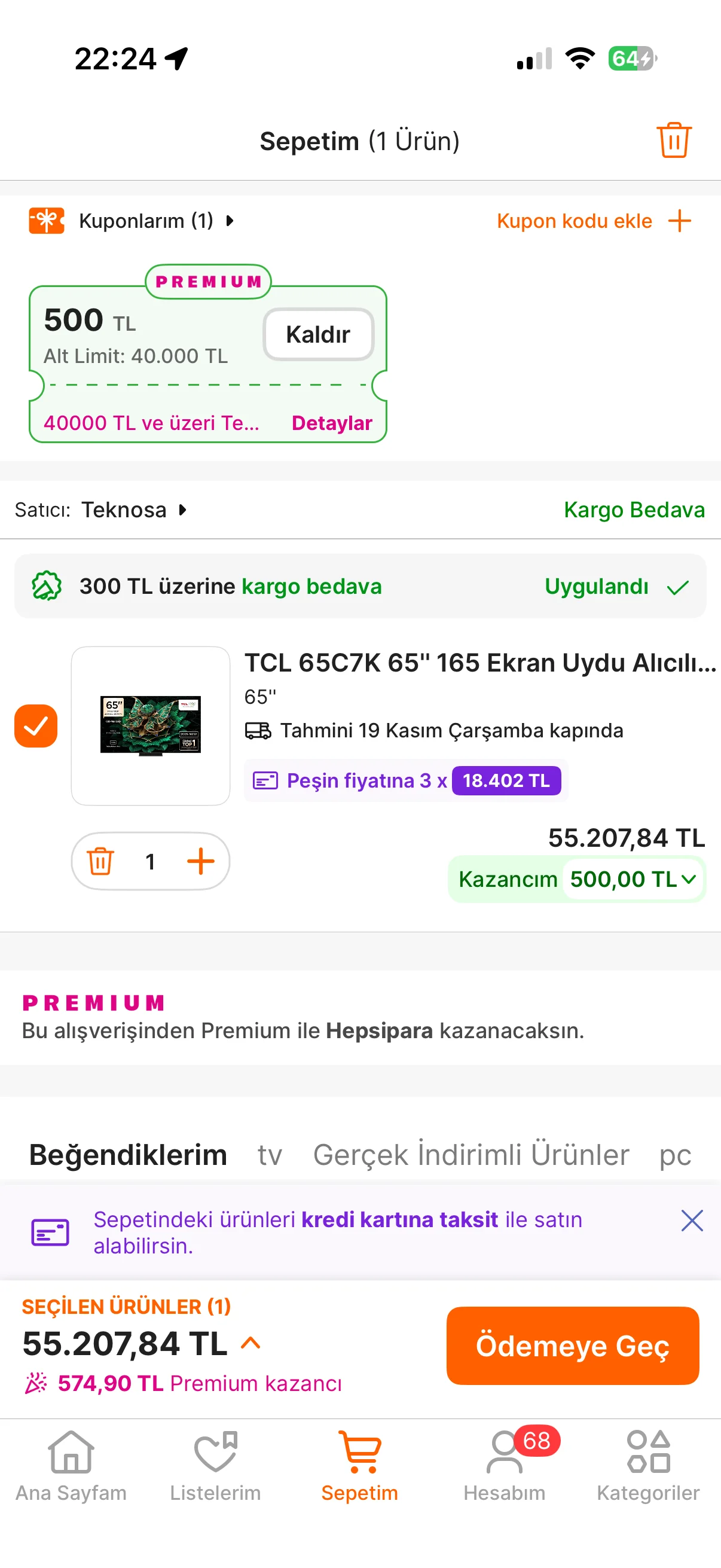 Şimdi konuştum normalde 1 kez kupon tanımlanıyor ve 14 gün sonra kullanılıyor dedi Ama bazen oluyormuş . Şimdi şikayet kaydı oluşturdum. Ürün dün 56.029 TL idi kuponla bugün de aynı kuponla 55.207 TL diyorum . O kuponlu fiyat sistem 320 TL tanımlıyor dedi kabul etmedim . Çünkü Dünkü kupon bugün de geçerliydi . Hatta şuanda sizinle konuşurken ürünü ucuz fiyattan alamadım diğerini iptal şansımı da kaybettim dedim ve bununla ilgili kayıt açtılar . Muhtemelen olumlu dönüş alırım Hepsiburada genelde mağdur etmiyor . Sadece biraz uğraştırıyor