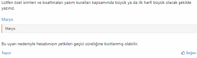 abi konu değil en küçük noktalama işaretinde hemen uyarı atıyorlar kısıtlanmış olabilirsiniz diye