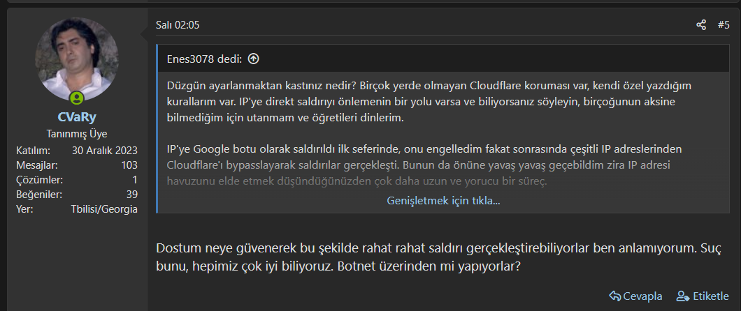 İMPARATORÖncelikle Herkese Selamlar Donanım Arşivi Üyeleri. Uzun Süredir Techolay foruma DDoS Saldırılarında Bulunuyorum. Kendisini Siber Güvenlik Uzmanı Olarak Tanıtıyor Ama *ptal Enesin Tek Yaptığı CloudFlare Üzerinden Güvenlik Duvarı Açmak.