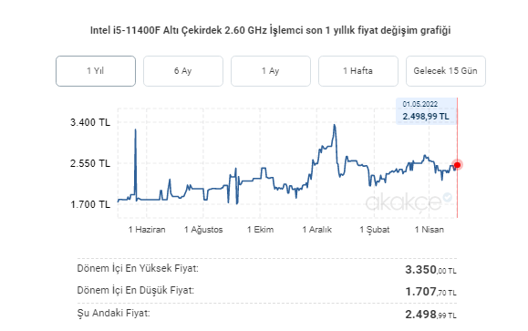Dönem içi en yüksek fiyat yazıyor? göz doktoruna görünmenizde fayda var. Bu işlemci son 1 sene içinde hiçbir şekilde 4675 lira civarında sabit kalmamış yada o fiyat bandına yükselmemiş, en fazla 3350 lira civarını görmüş ah ah...