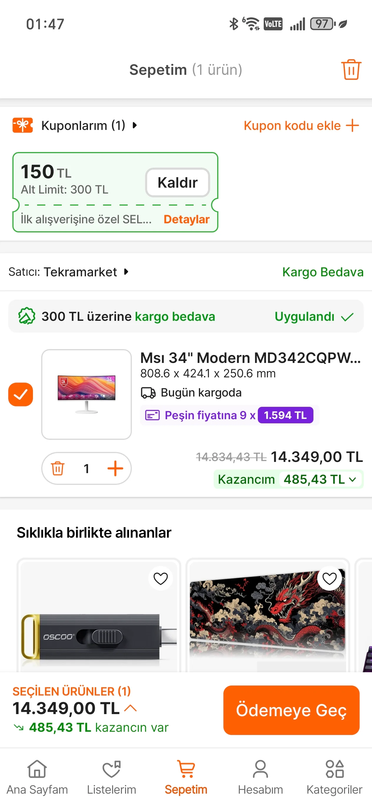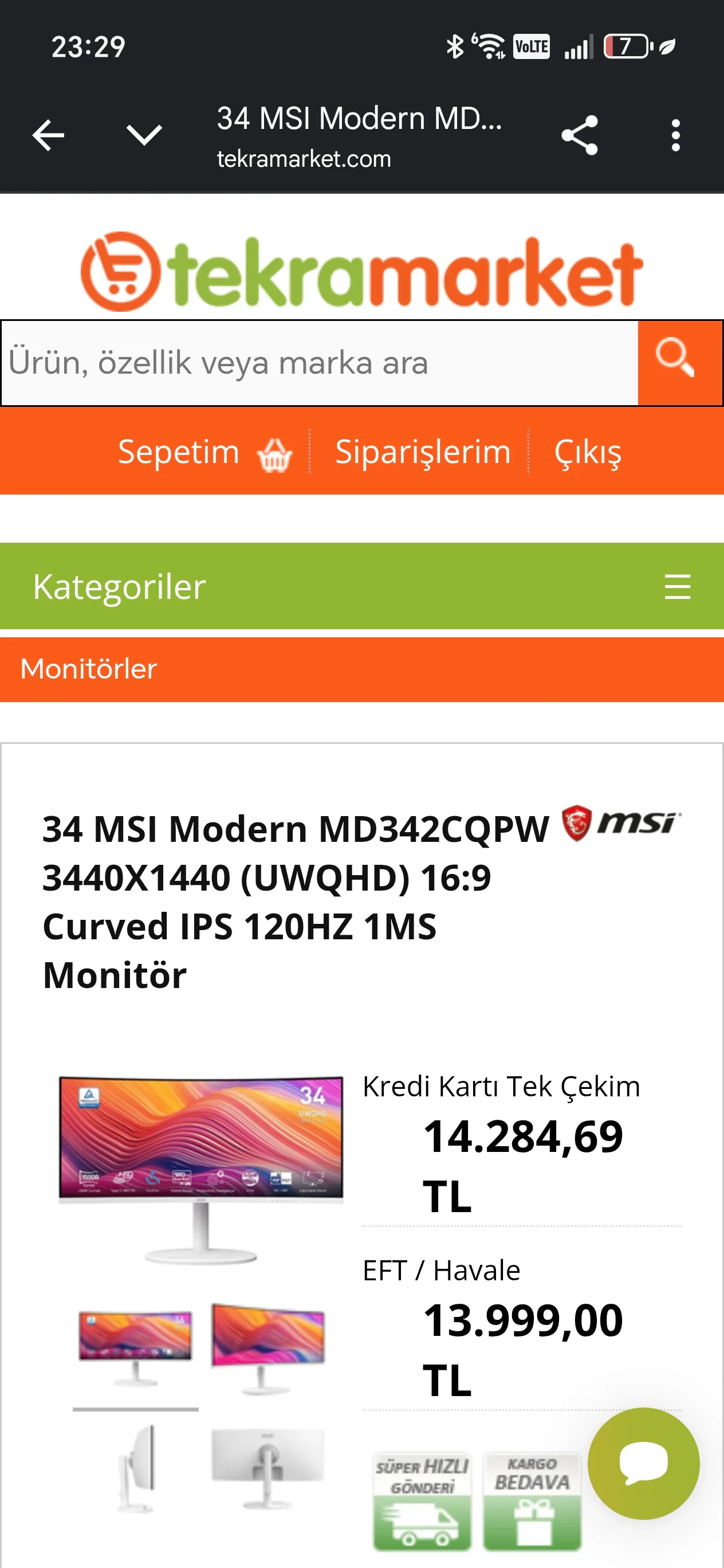 Msi md342cqpw monitör bakiyorum 13klardan 17klara cikmisti fiyati simdi geri düsüyor.tekramarket adlı satıcı güvenilir midir? Kendi sitelerinden eft havale ile alisveris yaparsam sorun yasar miyim? Yoksa trendyol gibi pazaryerinden yine ayni saticidan mi alayim?