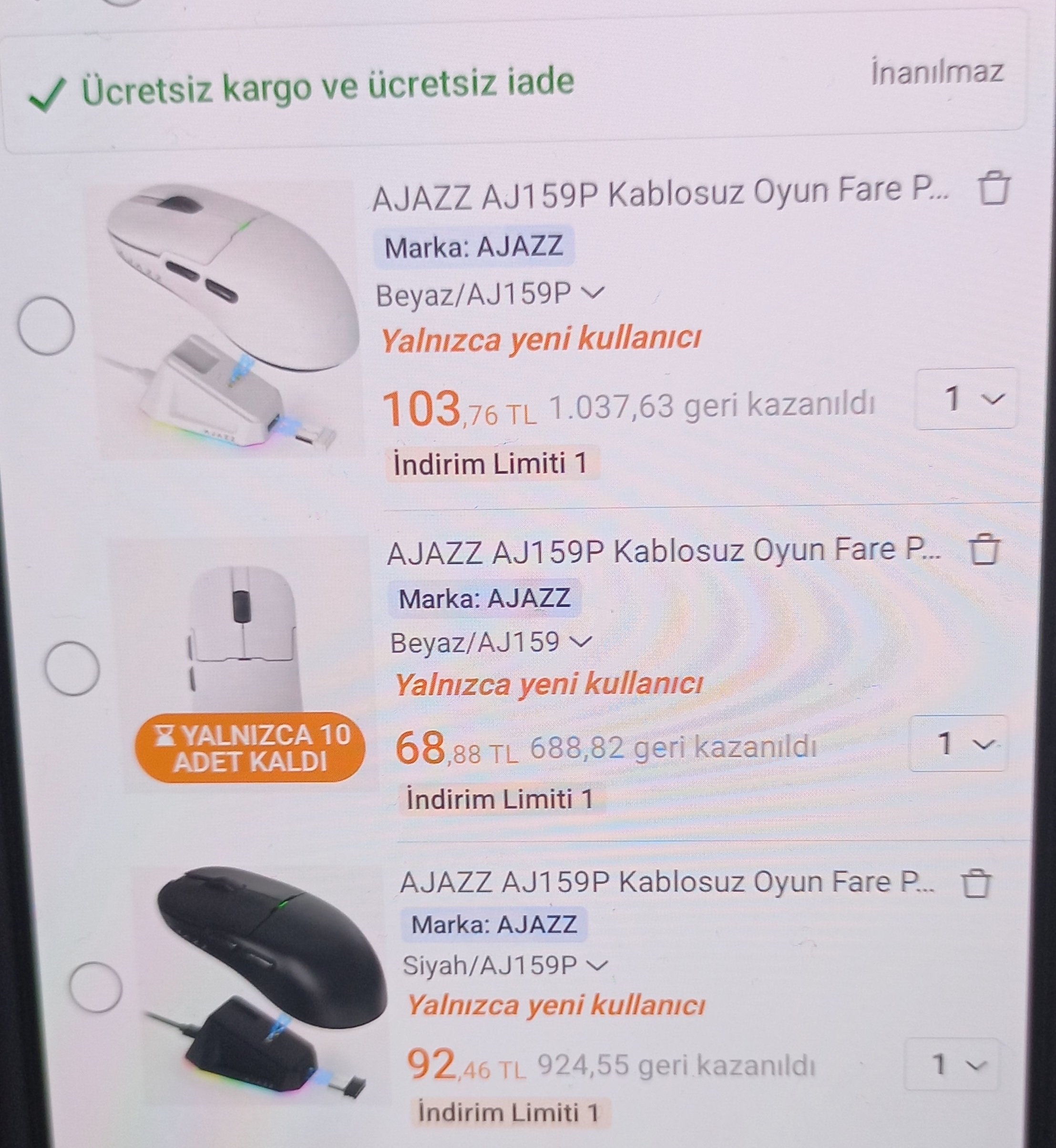 şimdi denedim beyaz renk 159p modelini aldım teşekürler